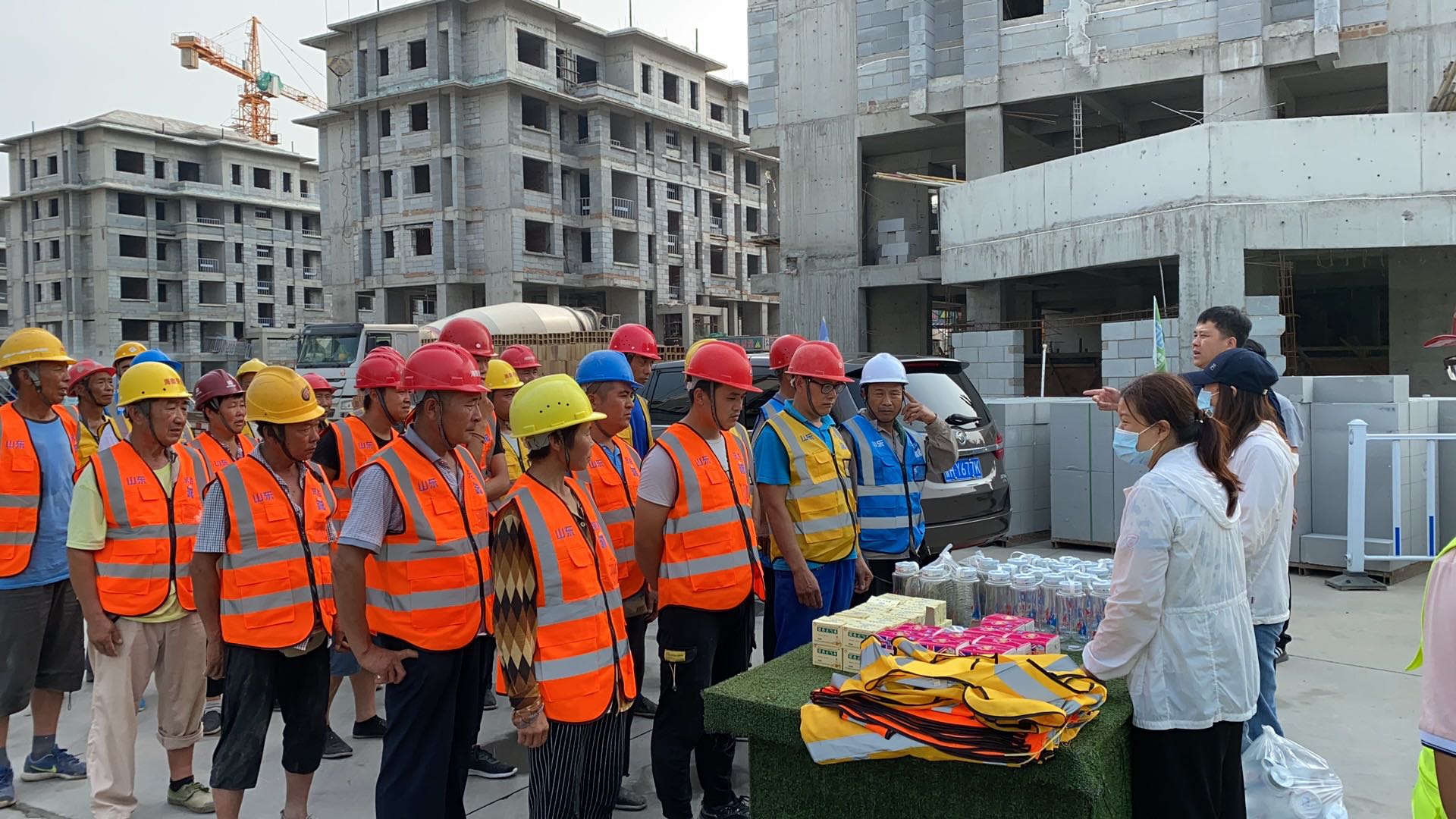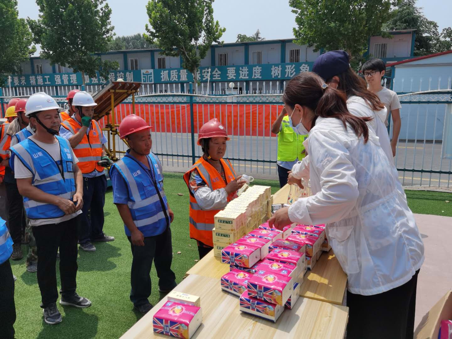夏日里驕陽似火、酷熱難耐,烈日灼燒的工地上,建設(shè)者們埋頭苦干、揮汗如雨,用辛勤的汗水譜寫著酷暑下熱火朝天的動人畫面。7月8日,集團辦公室、施工管理部代表集團公司高管層、工會,深入天繪商業(yè)街、京投SOHO、柳行幼兒園、海達會展中心、紫麟府二期、兗州瑞馬等施工現(xiàn)場,為工人們送去了綠豆、水杯、風(fēng)油精、藿香正氣水、紙巾等消暑物品,并叮囑工人們保重身體,做好防暑降溫工作,確保安全生產(chǎn),真正把清涼送到了施工現(xiàn)場,把關(guān)懷送進了工人心坎。