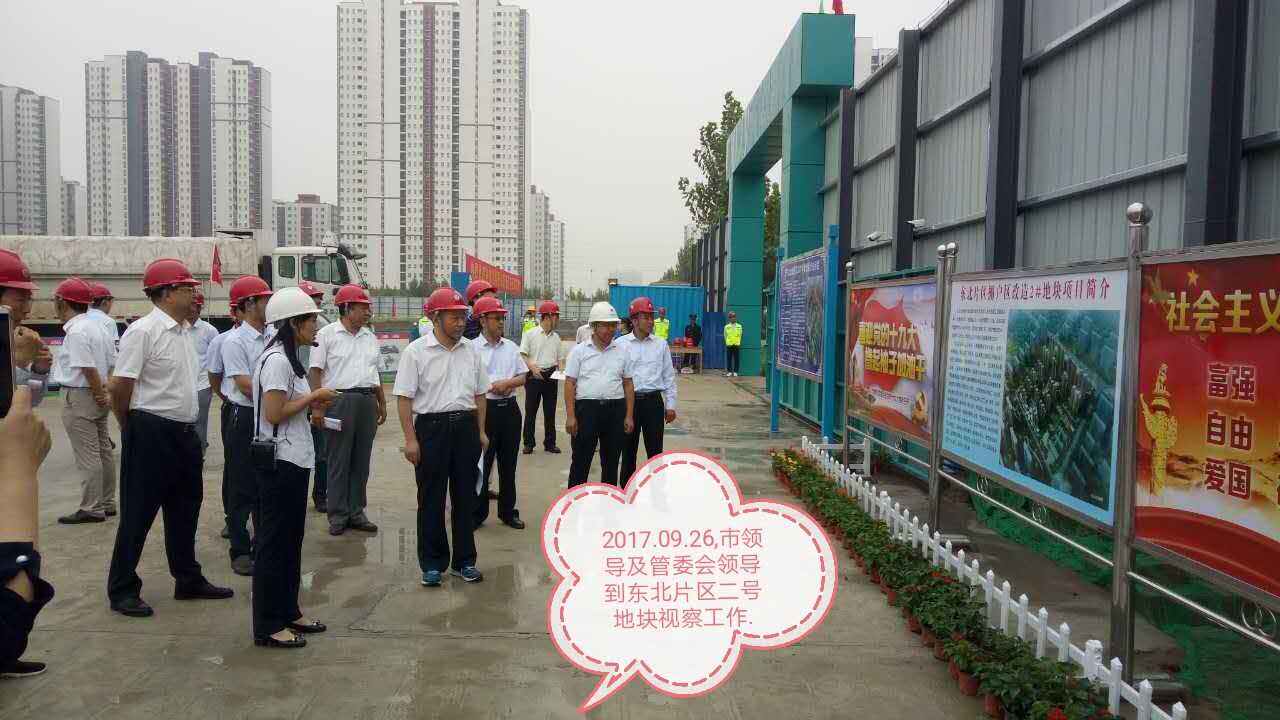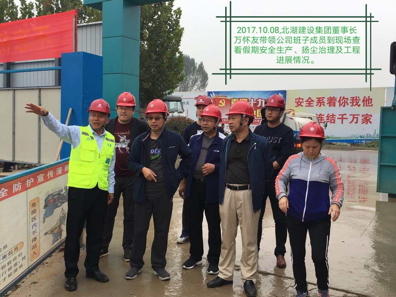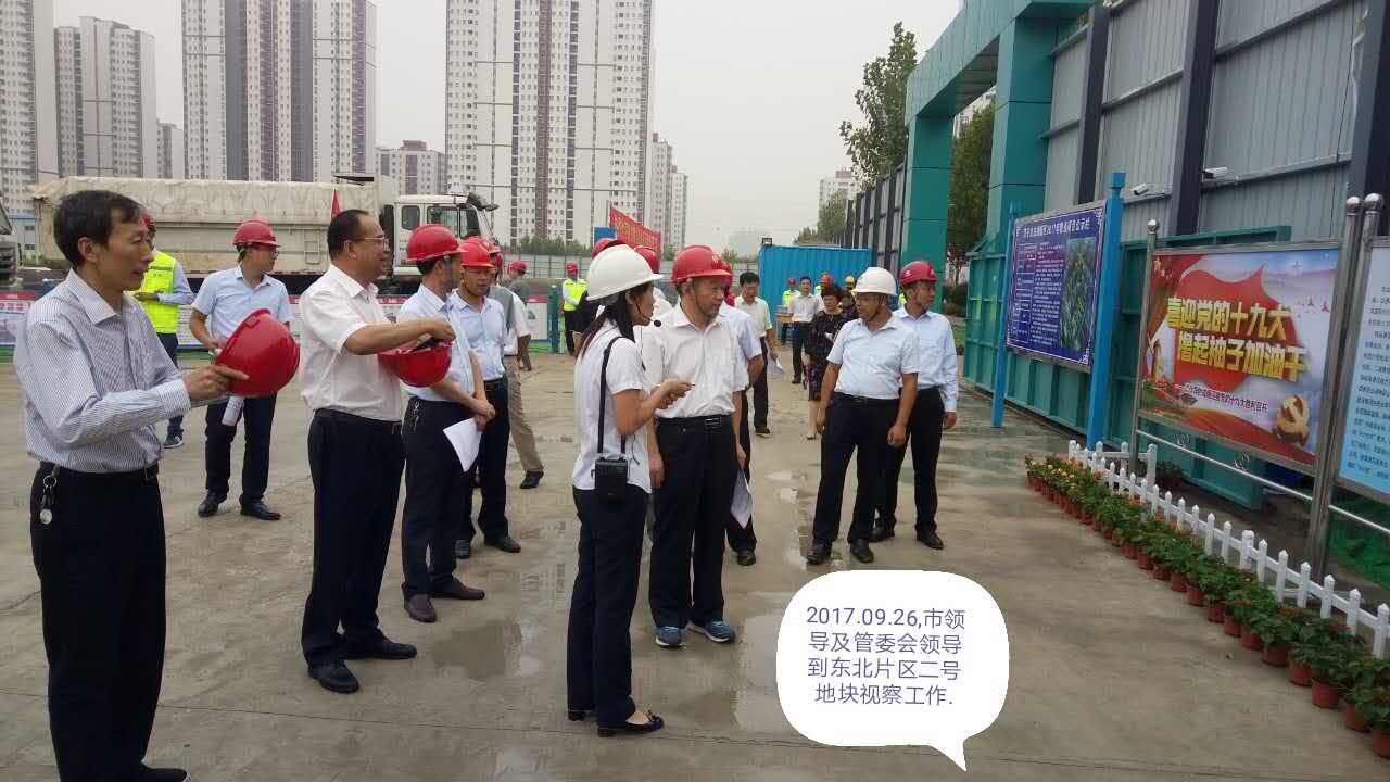 2017年9月至10月期間,市領導、太白湖區(qū)管委會領導及北湖建設集團一行陸續(xù)到濟寧北湖度假區(qū)東北片區(qū)棚戶區(qū)改造2#地塊項目部、冠魯小學項目部檢查指導工作,并現(xiàn)場查看假期安全生產(chǎn)、揚塵治理及工程進展情況,對兩個項目部工作給予了高度評價及肯定,并提出了新的指導意見。