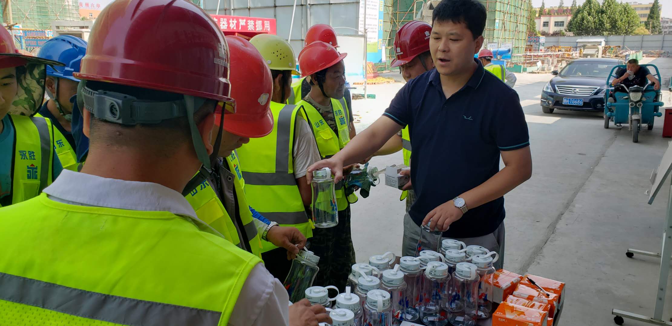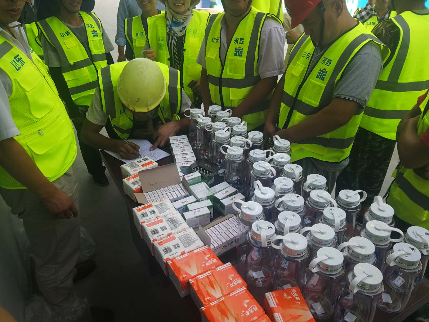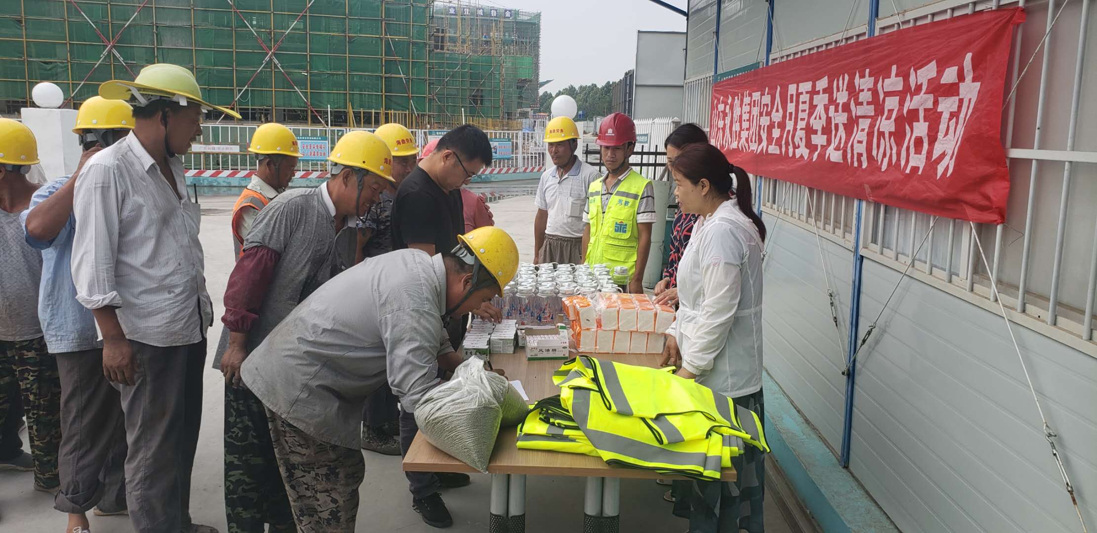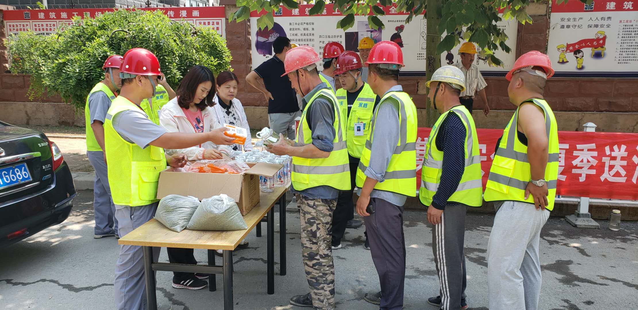 驕陽似火,酷暑難當(dāng)。隨著聒噪的蟬鳴,又迎來了今年的高溫季節(jié),為做好防暑降溫工作,保障施工一線員工和廣大農(nóng)民工的健康權(quán)益,推動改善員工生產(chǎn)生活條件,確保一線員工和廣大農(nóng)民工平安度夏。6月18日、19日,集團(tuán)公司施工部,代表集團(tuán)公司高管層和工會,分別到所有在建施工一線,為職工發(fā)放了防暑藥品、涼茶、水杯、綠豆、毛巾等防暑降溫物品1000余件,把清涼送到了施工一線。